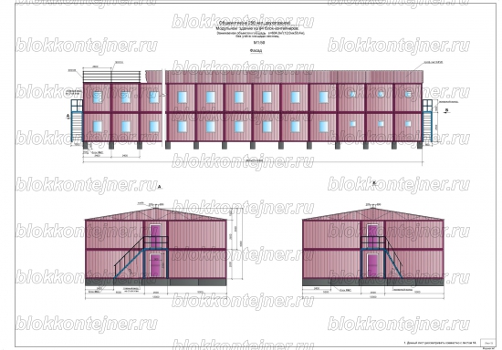 Общежитие на 150 человек, трехэтажное из 36 БК